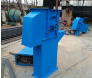 斗式提升機的輸送工作原理是:料斗把物料從下面的儲藏中舀起,隨著輸送帶或鏈提升到頂部,繞過頂輪后向下翻轉, 斗式提升機將物料傾入接受槽內。帶傳動的斗式提升機的傳動帶一般采用橡膠帶,裝在下或上面的傳動滾筒和上下面的改向滾筒上。鏈傳動的斗式提升機一般裝有兩條平行的傳動鏈,上或下面有一對傳動鏈輪,下或上面是一對改向鏈輪。斗式提升機一般都裝有機殼,以防止斗式提升機中粉塵飛揚。